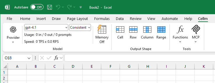 After installation, open Excel and look for the new Cellm tab in the ribbon menu. Use this tab to configure Cellm: